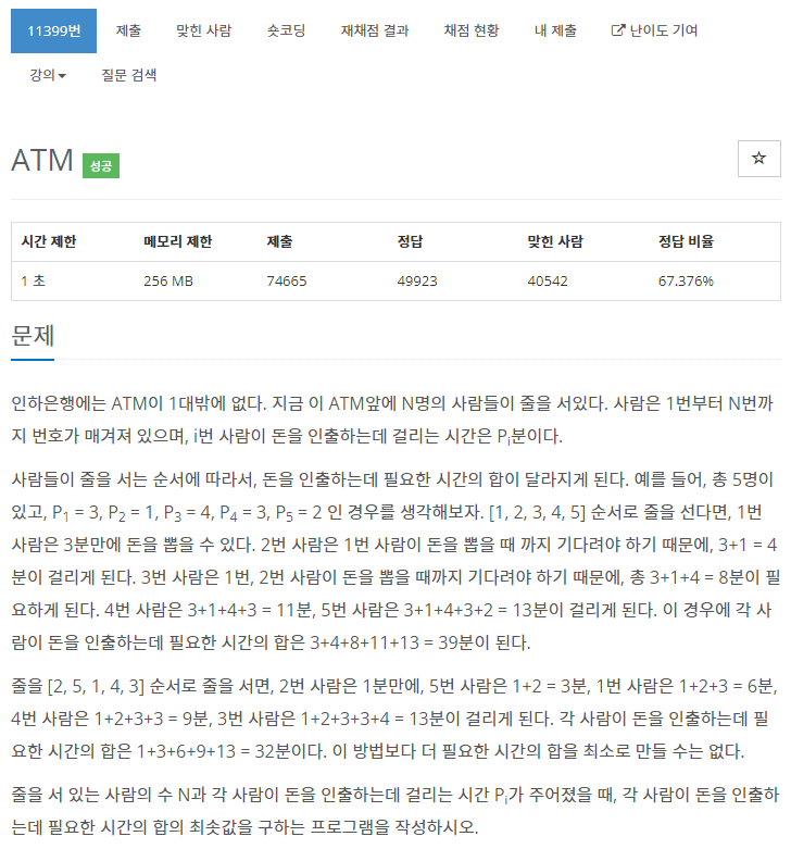 [Baekjoon] 11399번 ATM (Java)Java/Baekjoon 2022. 10. 3. 14:18