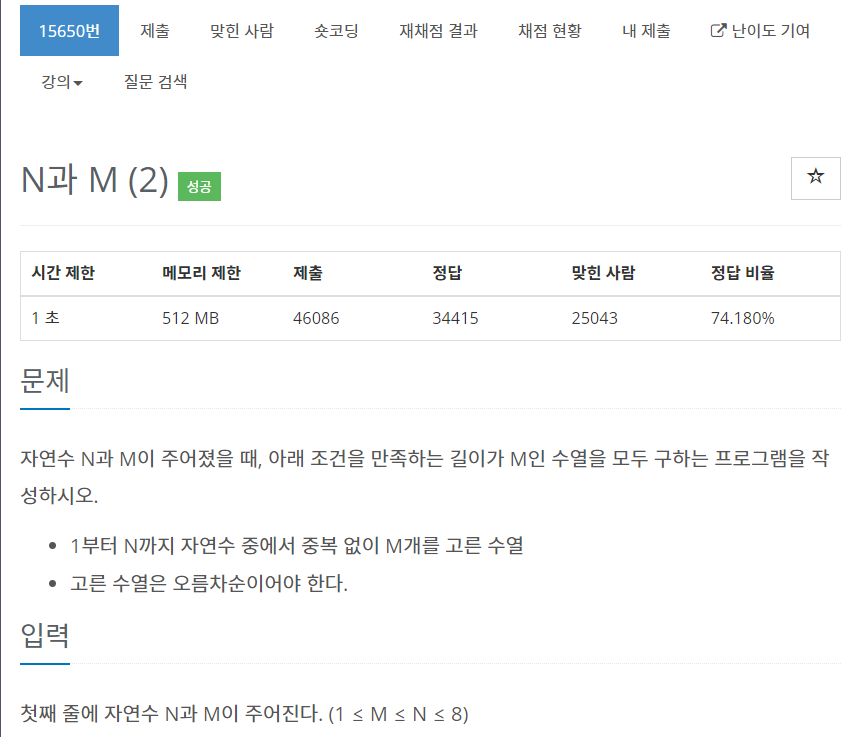 [Baekjoon] 15650번 N과 M(2) (Java)Java/Baekjoon 2022. 8. 28. 01:47