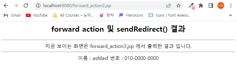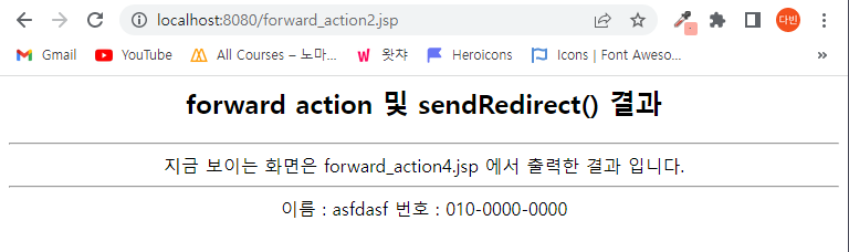 <h2>forward action 및 sendRedirect() 결과</h2>
